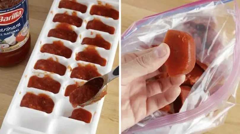 Voici la solution contre ce gaspillage inutile : gardez le reste de votre concentré dans un petit sac de congélation. Prenez juste soin de bien l’aplatir pour qu’il prenne la forme d’une plaque une fois congelé.