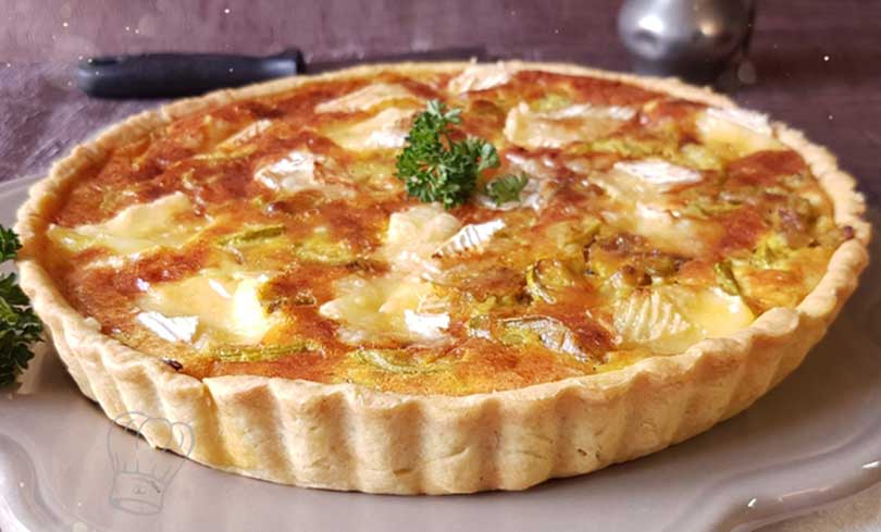 Aujourd’hui nous propose une recette de tarte aussi belle que gourmande. Une tarte aux fines rondelles de courgettes recouvertes de petits morceaux de Camembert, de Parmesan.