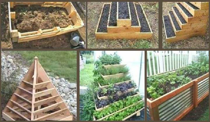 2. Pour vos fleurs et vos fines herbes, utilisez du bois pour construire des pyramides, des paliers ou un escalier. Bref, n’importe quelle forme peut convenir.